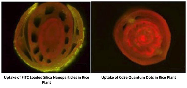 - Tracking nanomaterials in the plant system utilizing fluorescent dyesand quantum dots.