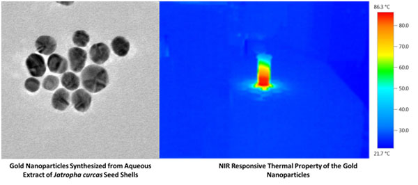 Non-Destructive harvesting of biogenic gold nanoparticles from japtrophacurcas seed meal and shell extracts and their application as bio-diagnostic photothermalablaters-lending shine to bio diesel byproducts. M. Sheikh Mohamed, A. Baliyan, Srivani V., Aby C. P., Y. Nagaoka, H. Minegishi, Y. Yoshida, T. Maekawa, D. S. Kumar, Nanomaterials and the Environment (2012) 10.2478/nanome-2012-0002.